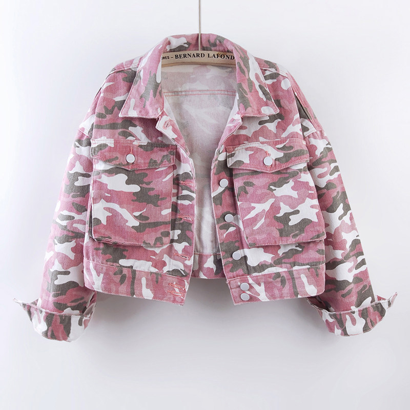 2026春季新款复古迷彩印花长袖牛仔外套女短款宽松小个子夹克上衣