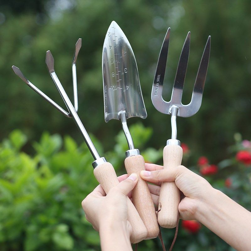 园艺种花工具套装不锈钢铲子养花盆栽工具三件套家用种菜花园铲子
