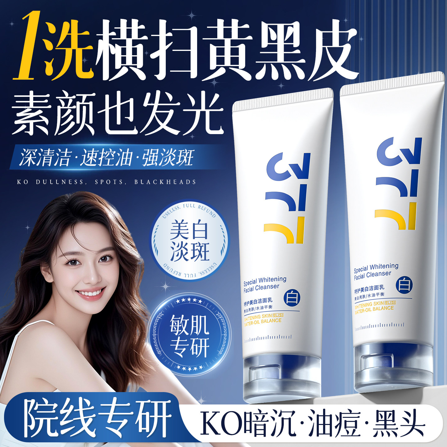 美白洗面奶深层清洁收缩毛孔控油去黑头美白淡斑女官方正品洁面乳