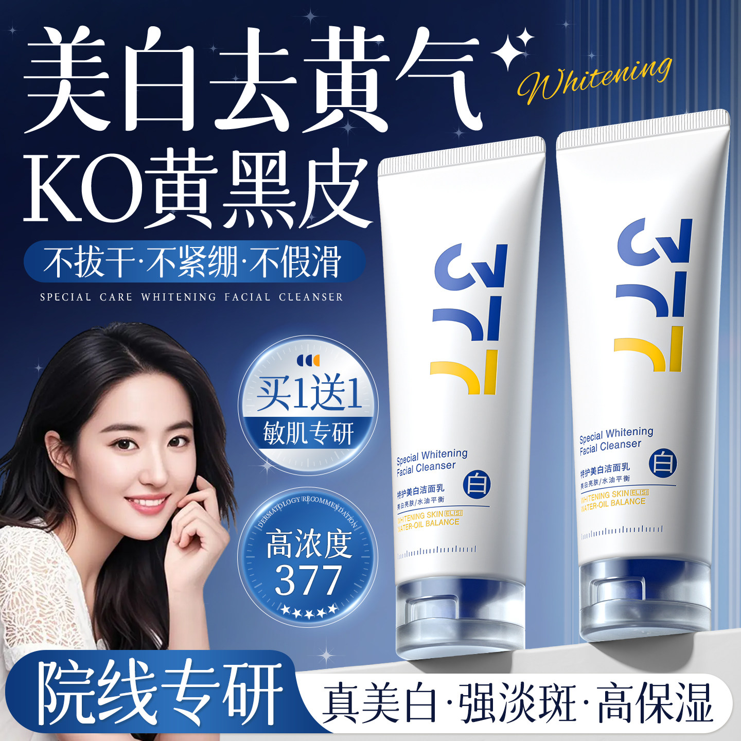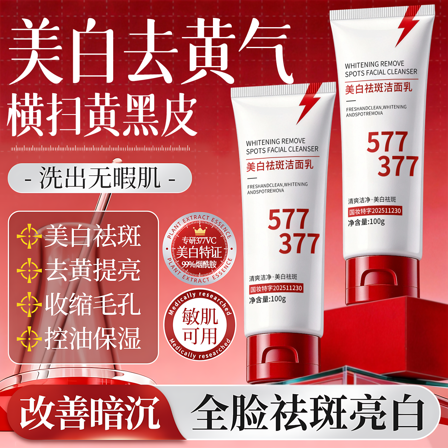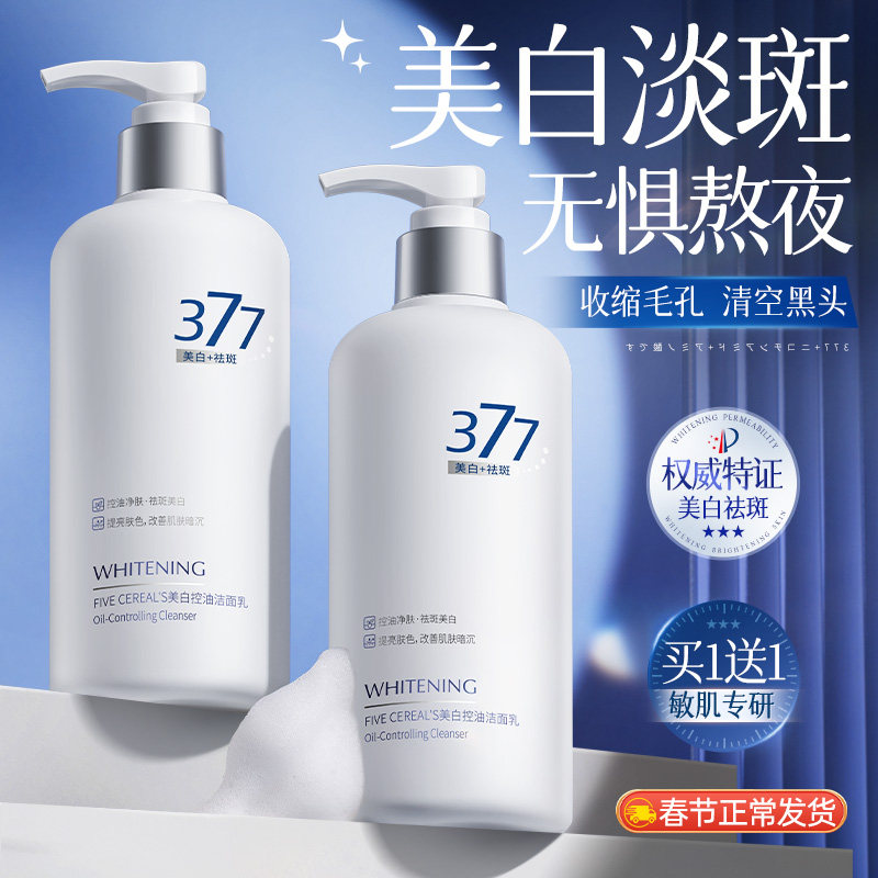 377美白洗面奶美白淡斑提亮肤色控油洁面保湿男女正品官方旗舰店
