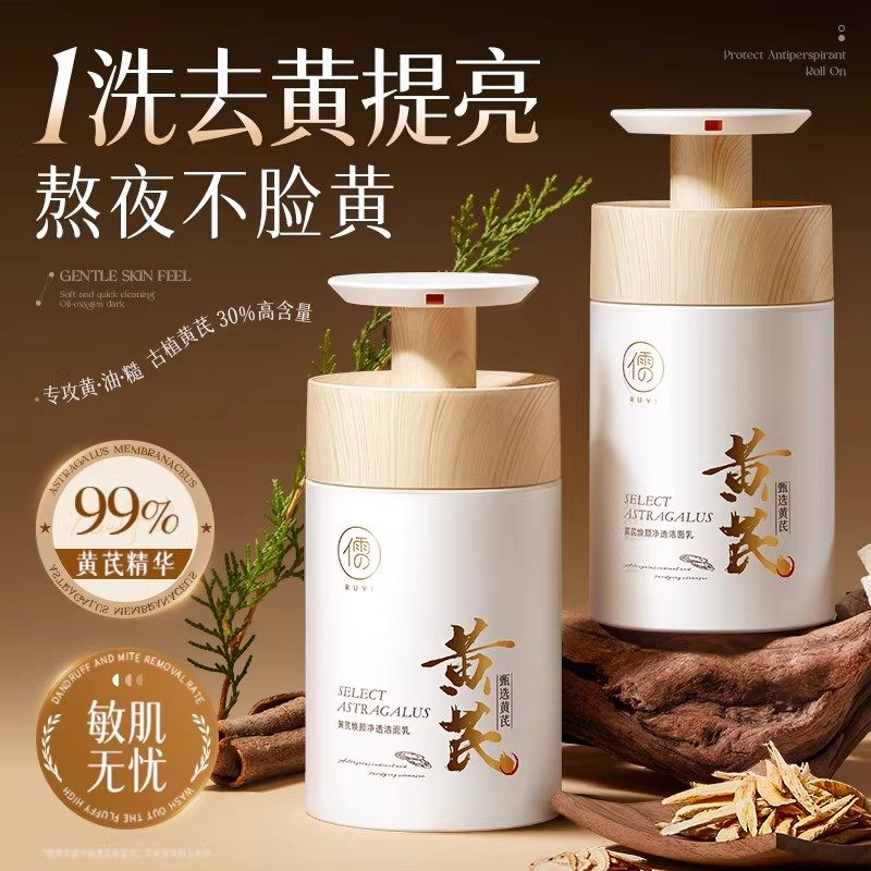黄芪洗面奶美白控油淡斑提亮男女士深层清洁收缩毛孔氨基酸洁面乳