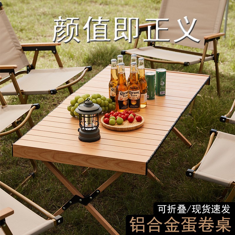 全铝合金蛋卷桌木纹烧烤店野餐露营桌子野营装备户外折叠桌椅组合