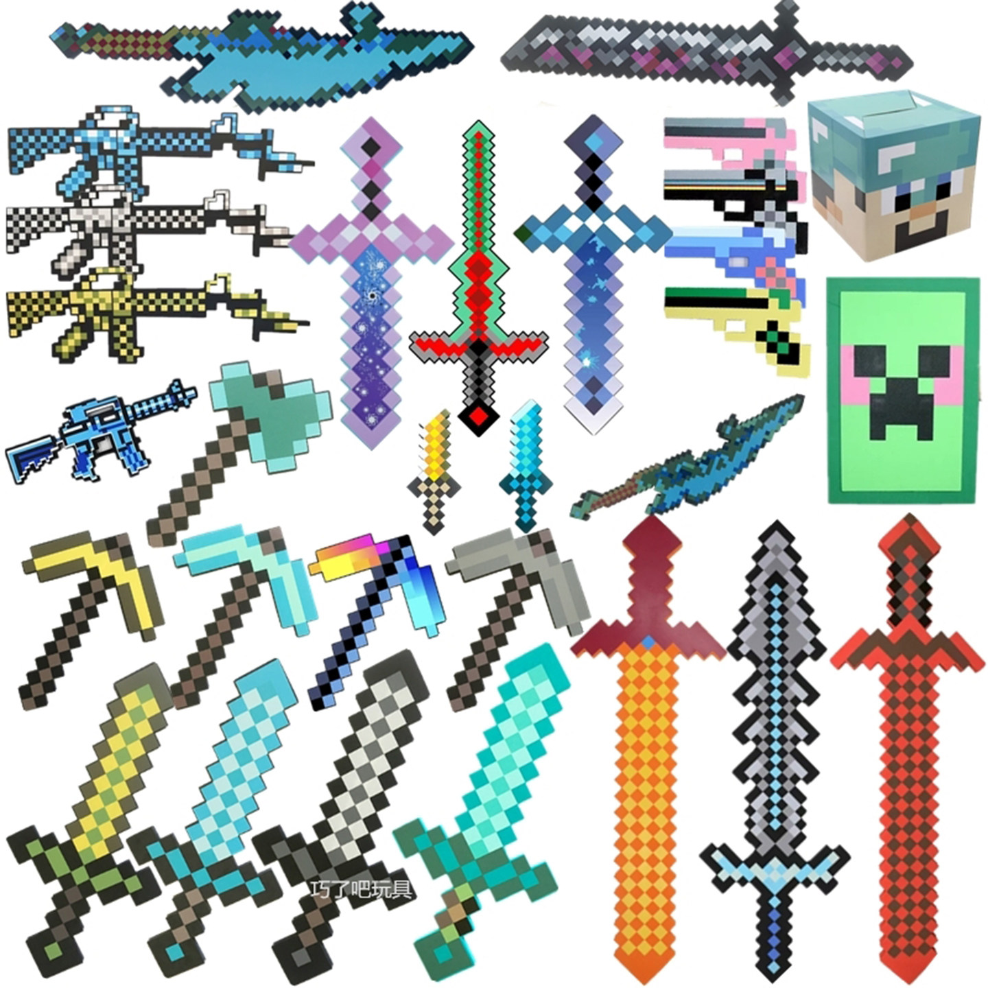 我的世界玩具模型钻石泡沫剑斧头铲子镐官方游戏周边武器道具工具