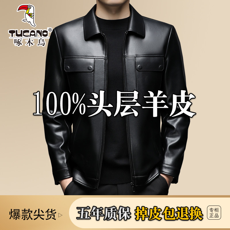 啄木鸟秋冬海宁真皮皮衣男头层绵羊皮爸爸装中年皮夹克宽松外套软