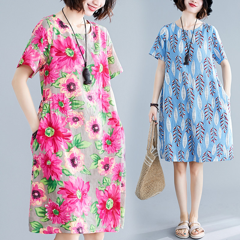 - 夏装女装棉麻连衣裙