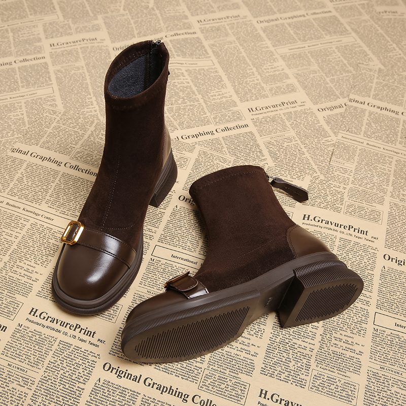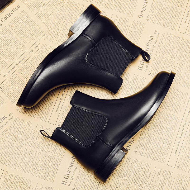 2025秋冬中跟短靴女真皮粗跟切尔西靴尖头平底英伦马丁靴春秋单靴