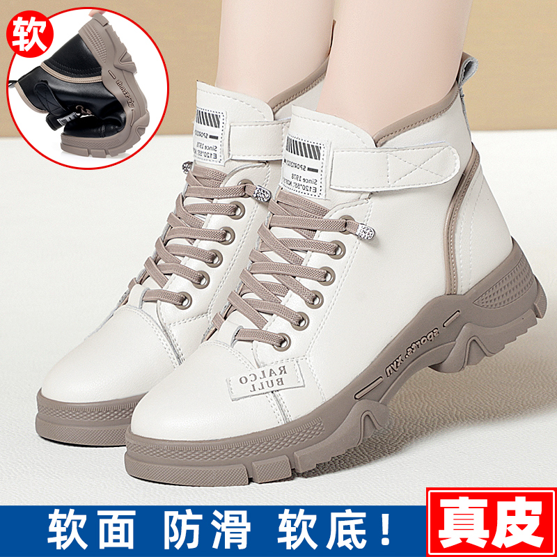 白色马丁靴真皮平底短靴女春秋单靴厚底女款靴子软皮软底女士棉鞋
