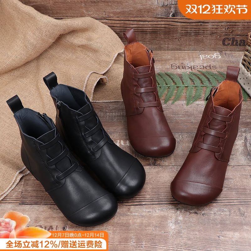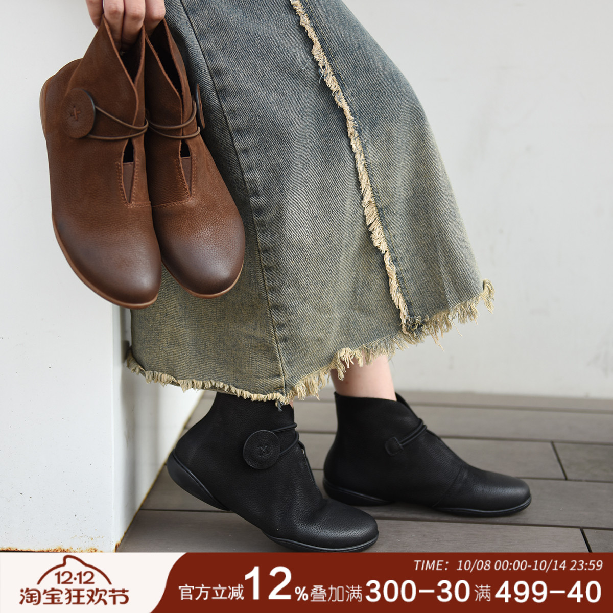 Artmu阿木原创复古真皮短靴女春秋单靴平底靴子小众2025冬季新款