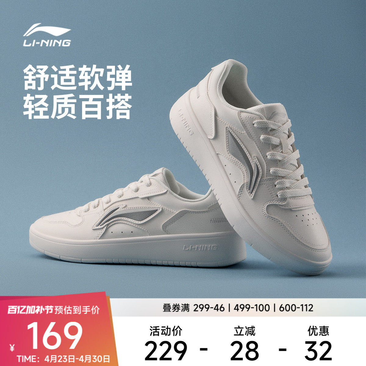 李宁穗岁丨休闲鞋男鞋2026新款夏季经典板鞋轻便女鞋小白鞋运动鞋