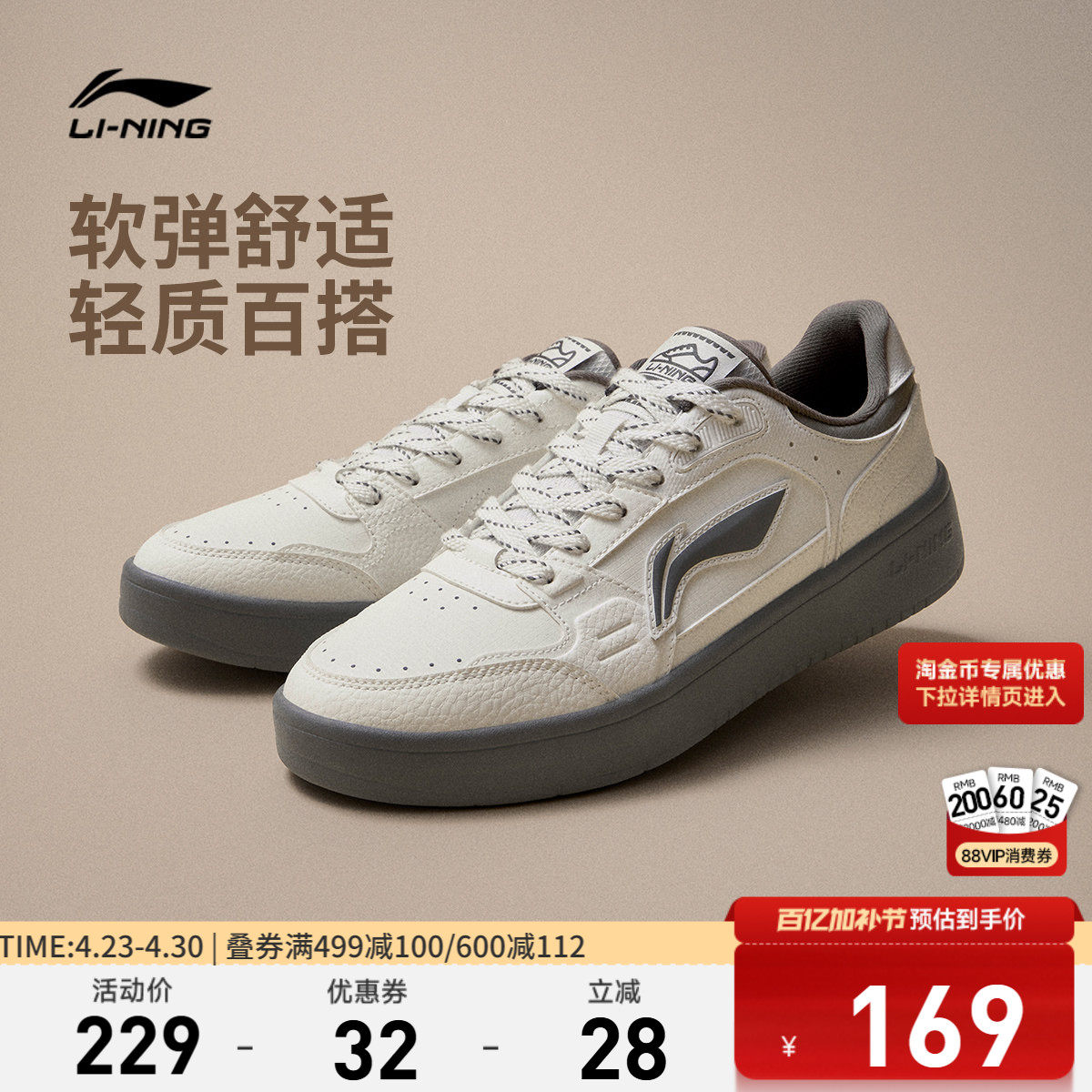 李宁元宝丨休闲鞋夏季男鞋2026新款经典板鞋轻便软弹小白鞋运动鞋