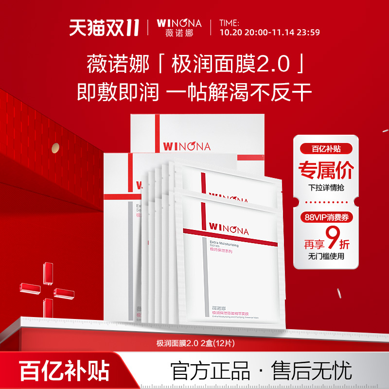 双11囤货!薇诺娜面膜60片补水保湿舒缓敏感官方正品weinuoma