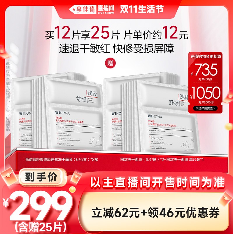 【百亿补贴】薇诺娜舒缓速修胶原冻干面膜敏感肌补水舒缓活动特惠