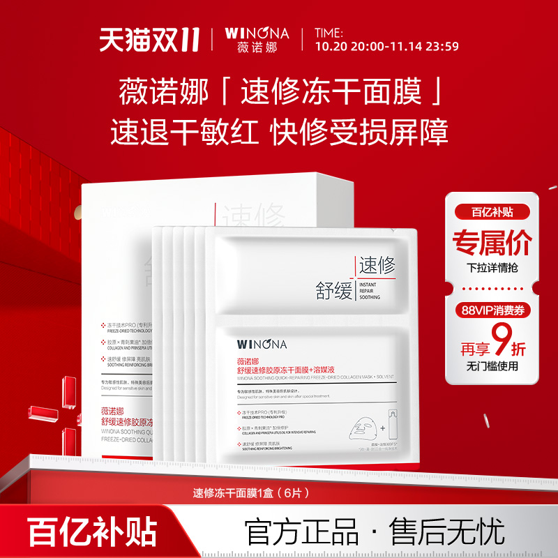 【双11狂欢购】【重磅新品】薇诺娜舒缓速修胶原冻干面膜敏感肌