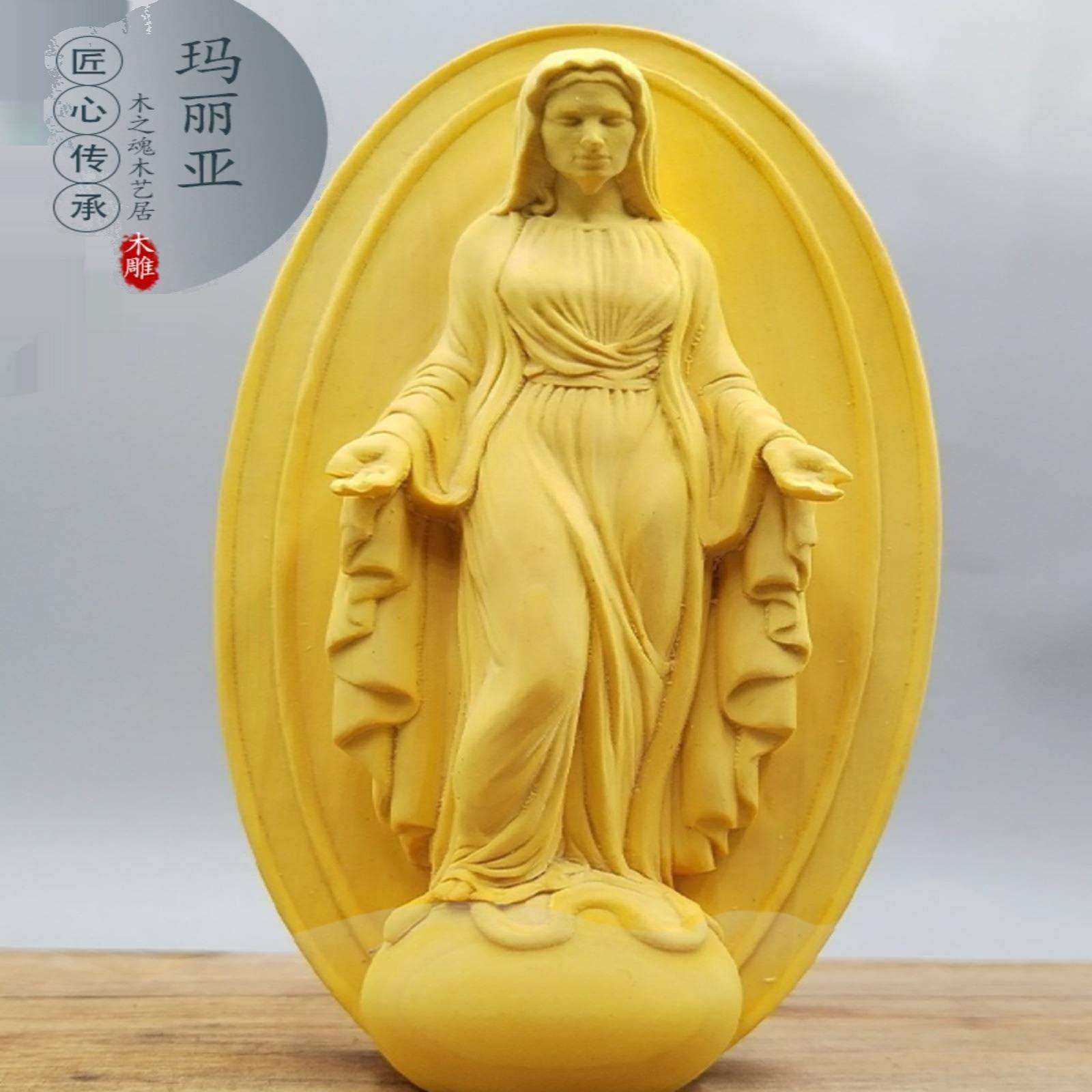 黄杨木雕玛丽亚神像木质摆件家居挂件简约装饰品电视柜工艺品创意