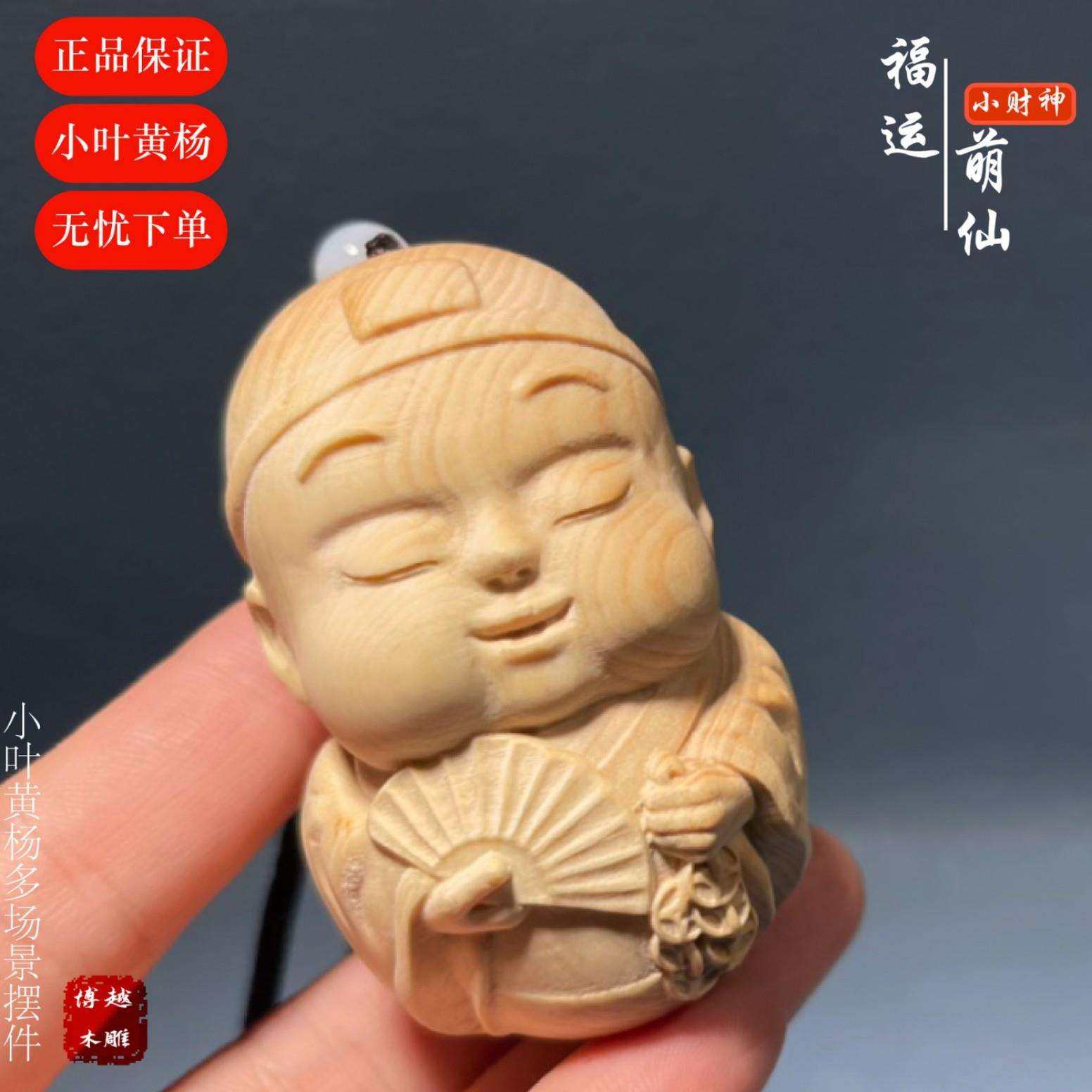 黄杨木木雕手工雕刻创意可爱财神家居桌面装饰木质工艺品摆件挂件