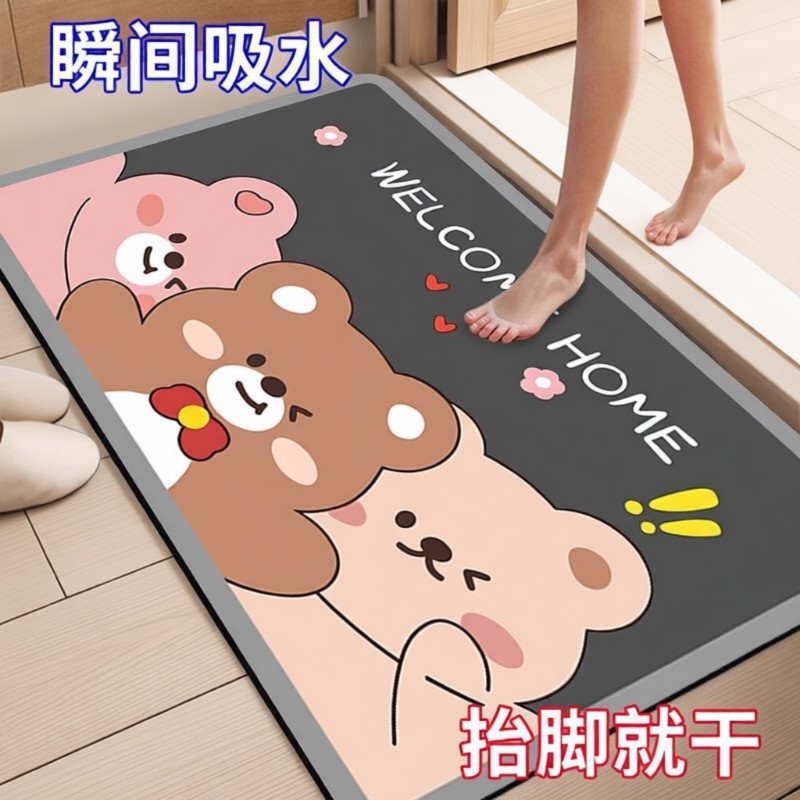硅藻泥地垫浴室卫生间门口吸水垫子防滑速干家用门口脚垫卡通地毯