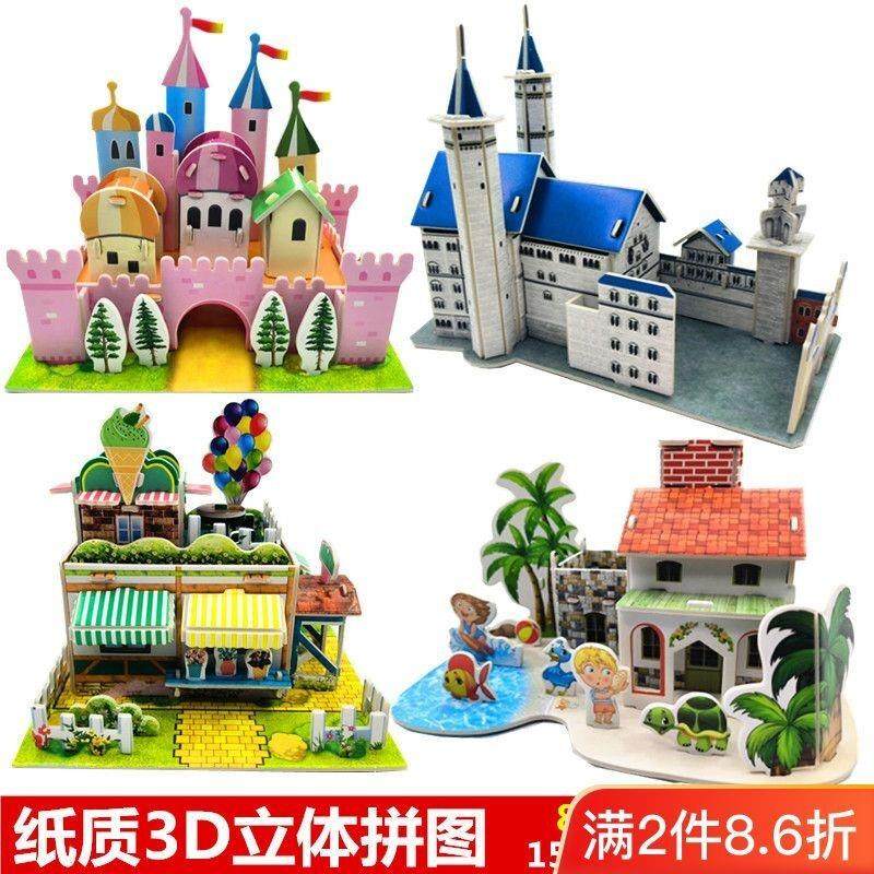 3d立体拼图房子积木男女孩儿童益智玩具创意DIY早教手工拼装开学