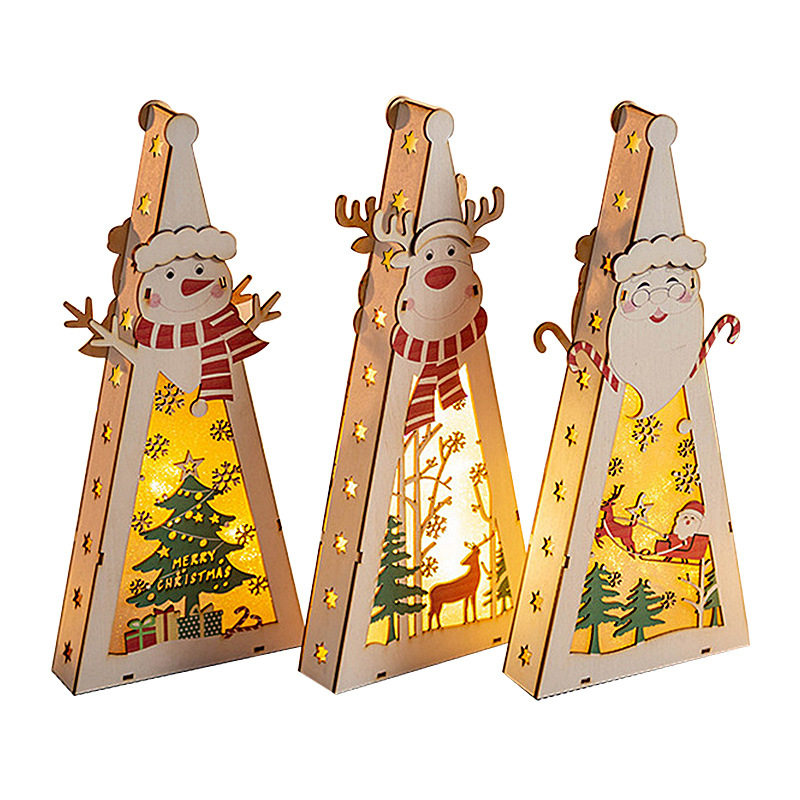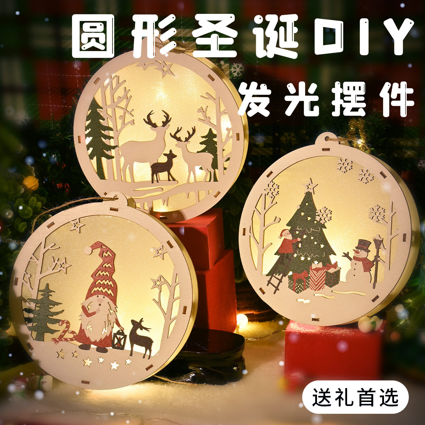 圣诞节装饰品diy手工房子发光木质摆件圣诞树雪人氛围布置挂件