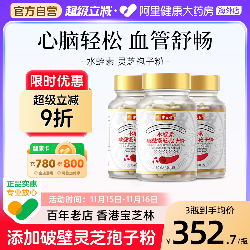 香港宝芝林水蛭素孢子粉破壁灵芝小分子肽胶囊免疫力中老年3瓶装