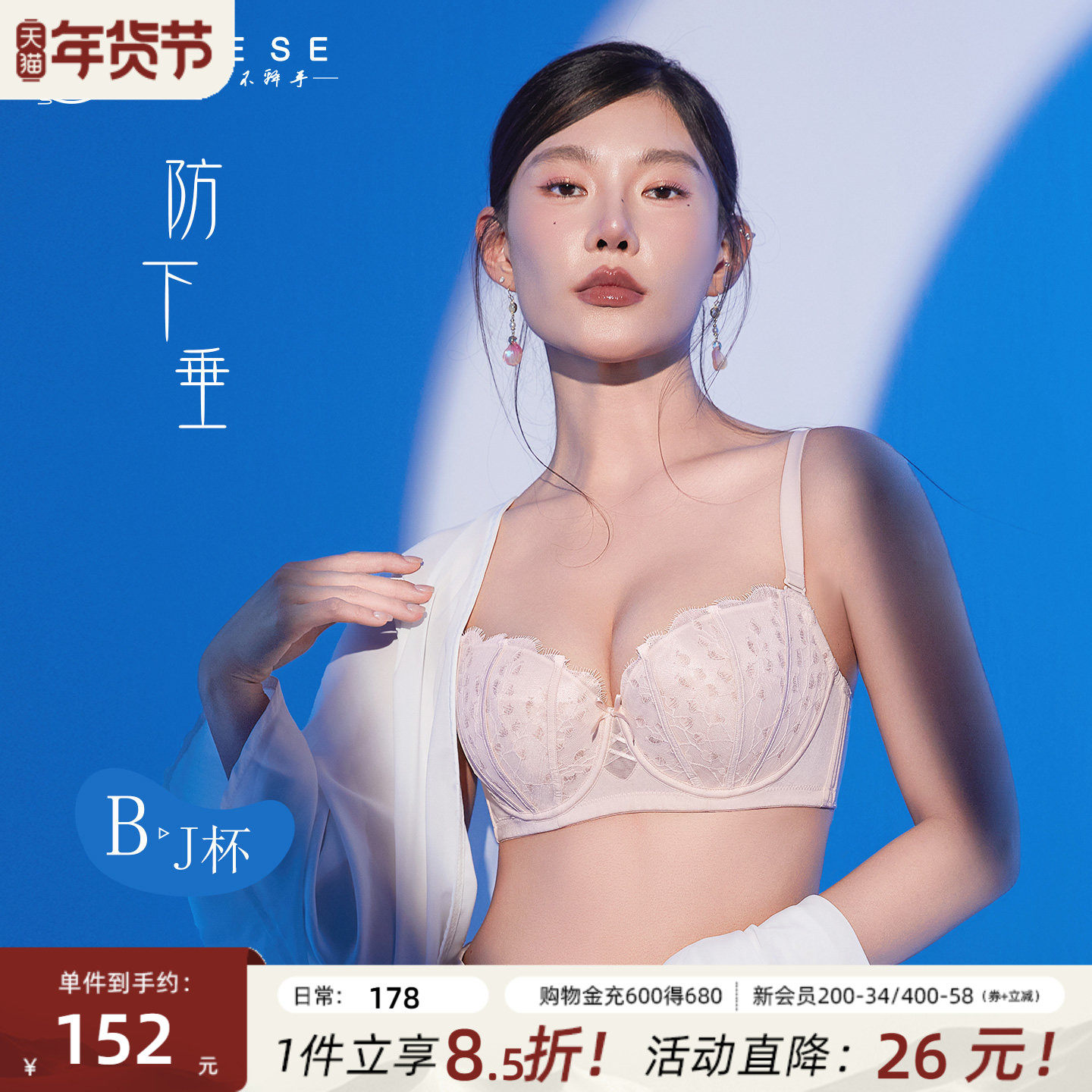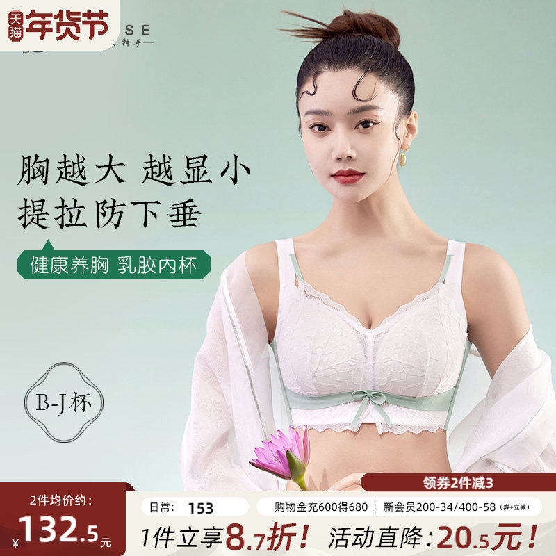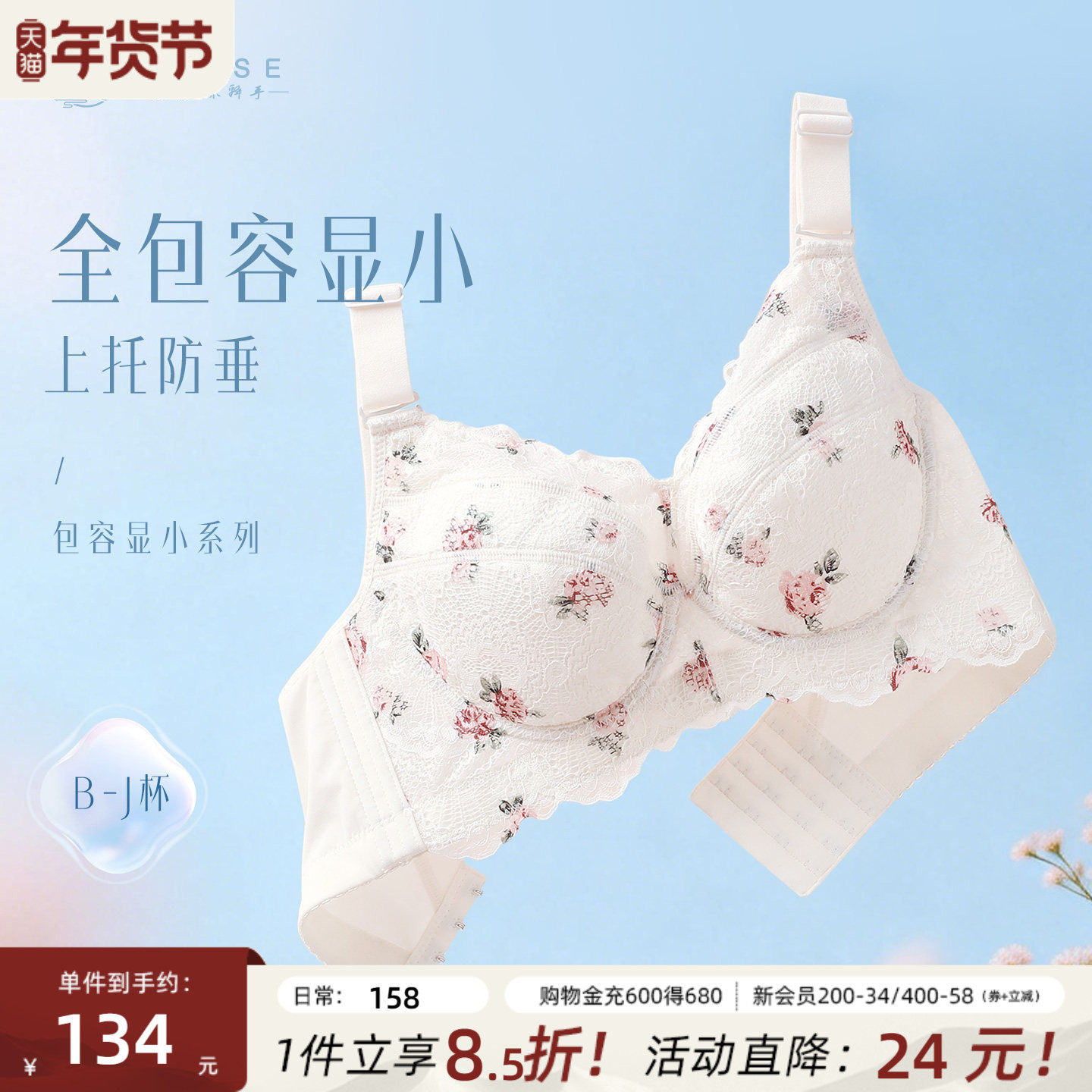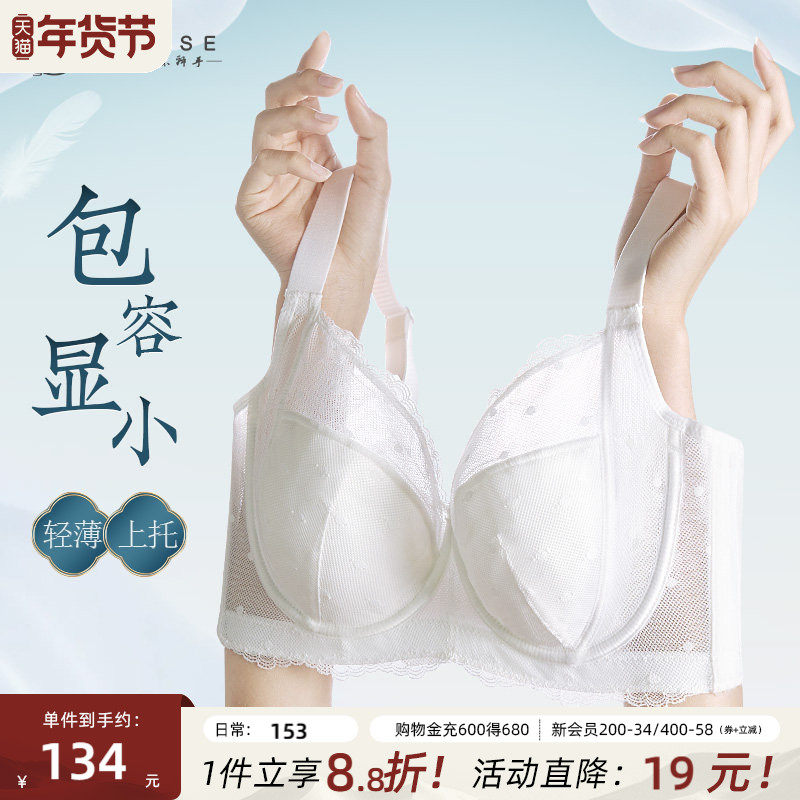 月色大胸显小内衣女性感大码聚拢上托防下垂立体调整型文胸罩薄款