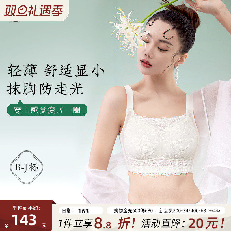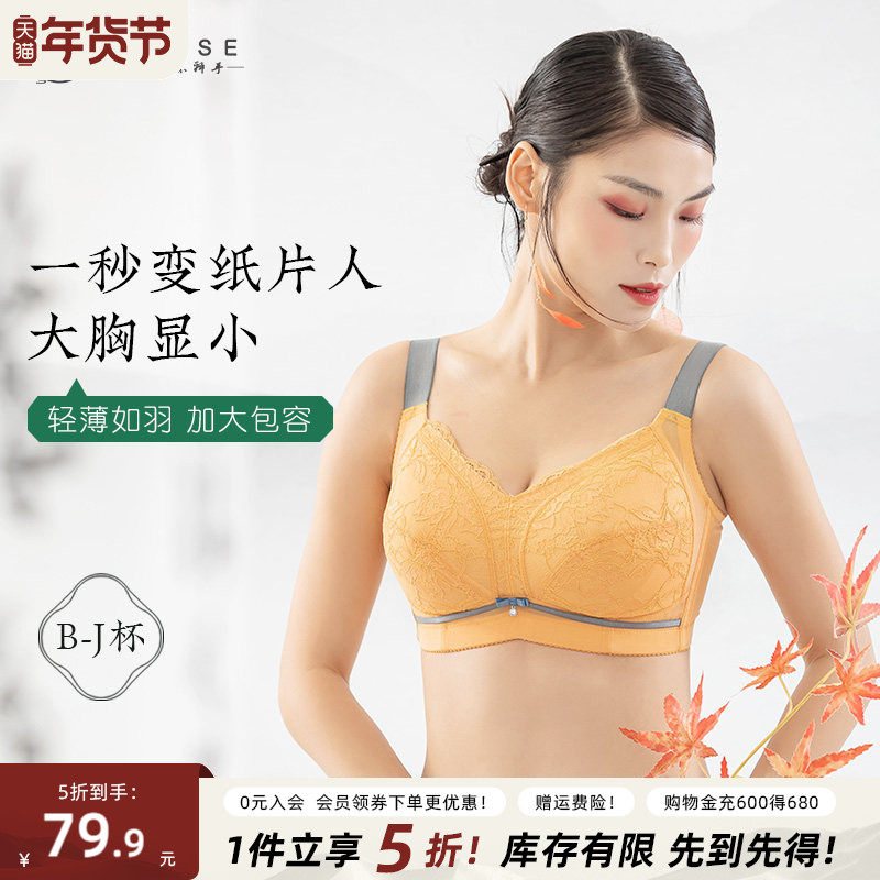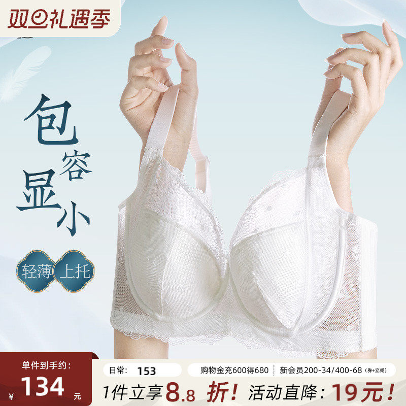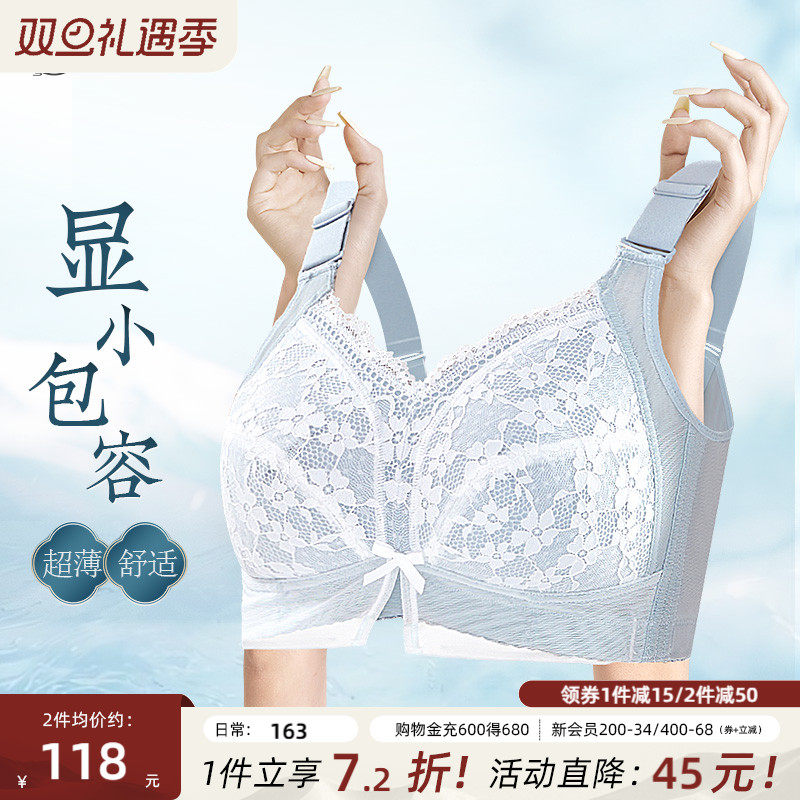 月色超薄内衣女大胸显小大码文胸无钢圈聚拢收副乳防下垂性感胸罩