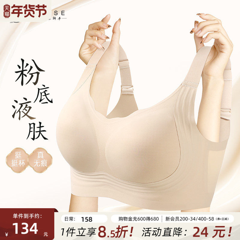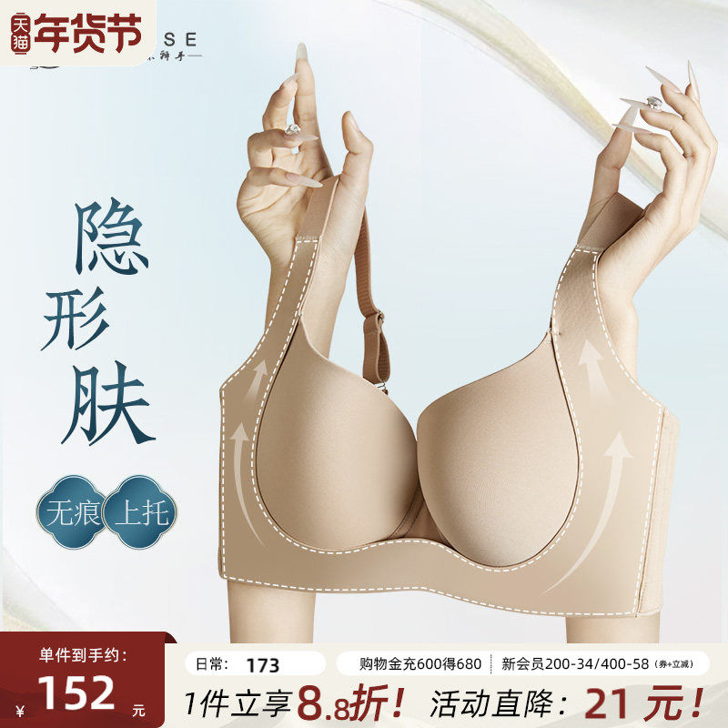 粉底液隐形内衣无痕大胸显小不透收副乳聚拢大胸防下垂大码文胸罩