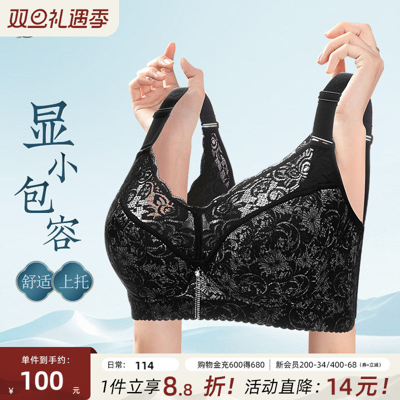 月色大码无痕内衣女胖mm大胸显小胸上托文胸聚拢收副乳防下垂胸衣