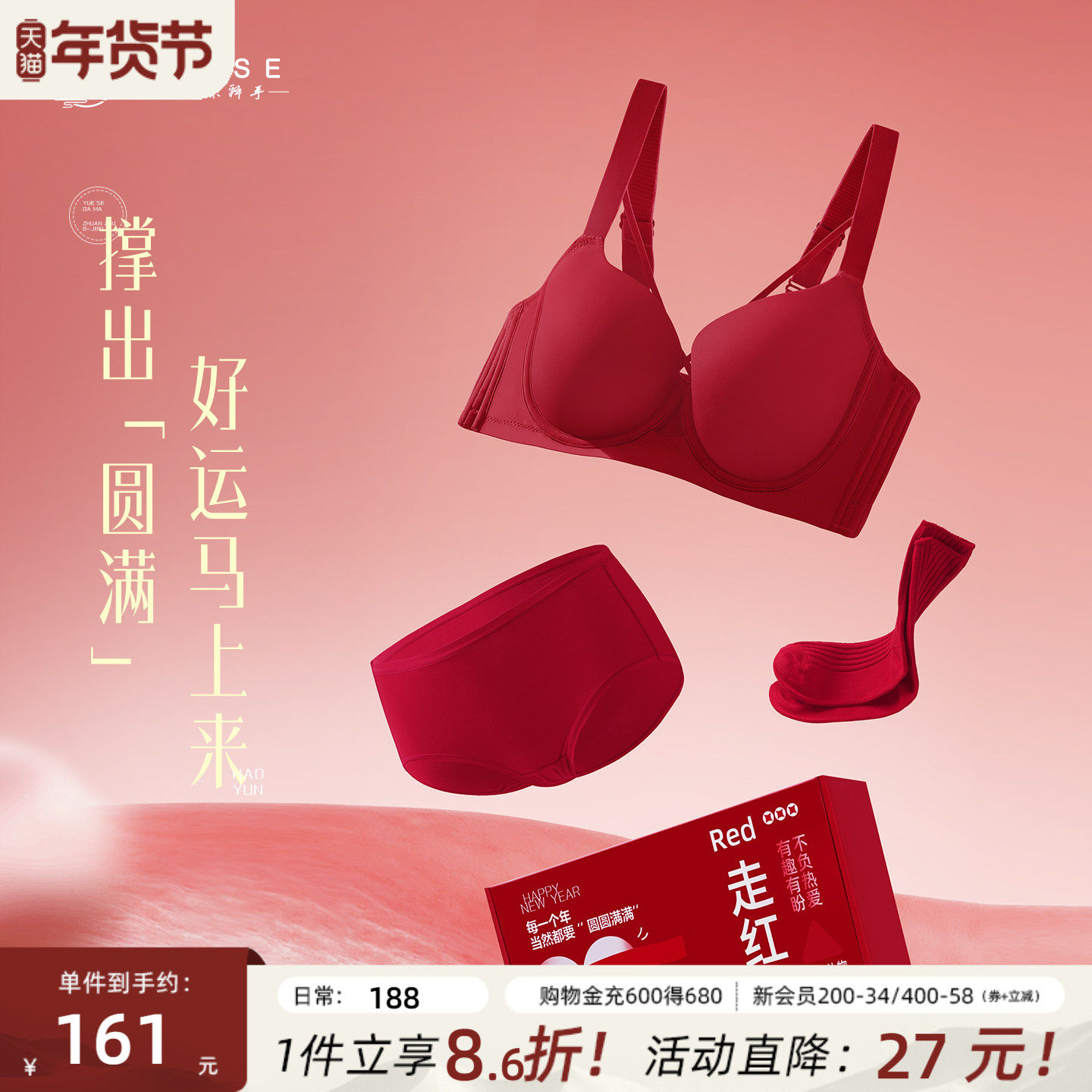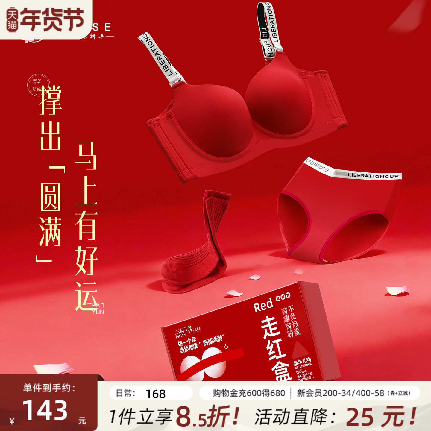 2026新款红色本命年内衣内裤套装女大胸防下垂新娘结婚马年文胸