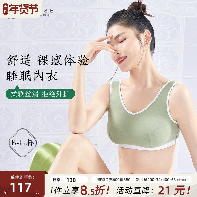 月色大码睡眠内衣无钢圈纯棉美背防外扩防下垂背心式大胸文胸晚上