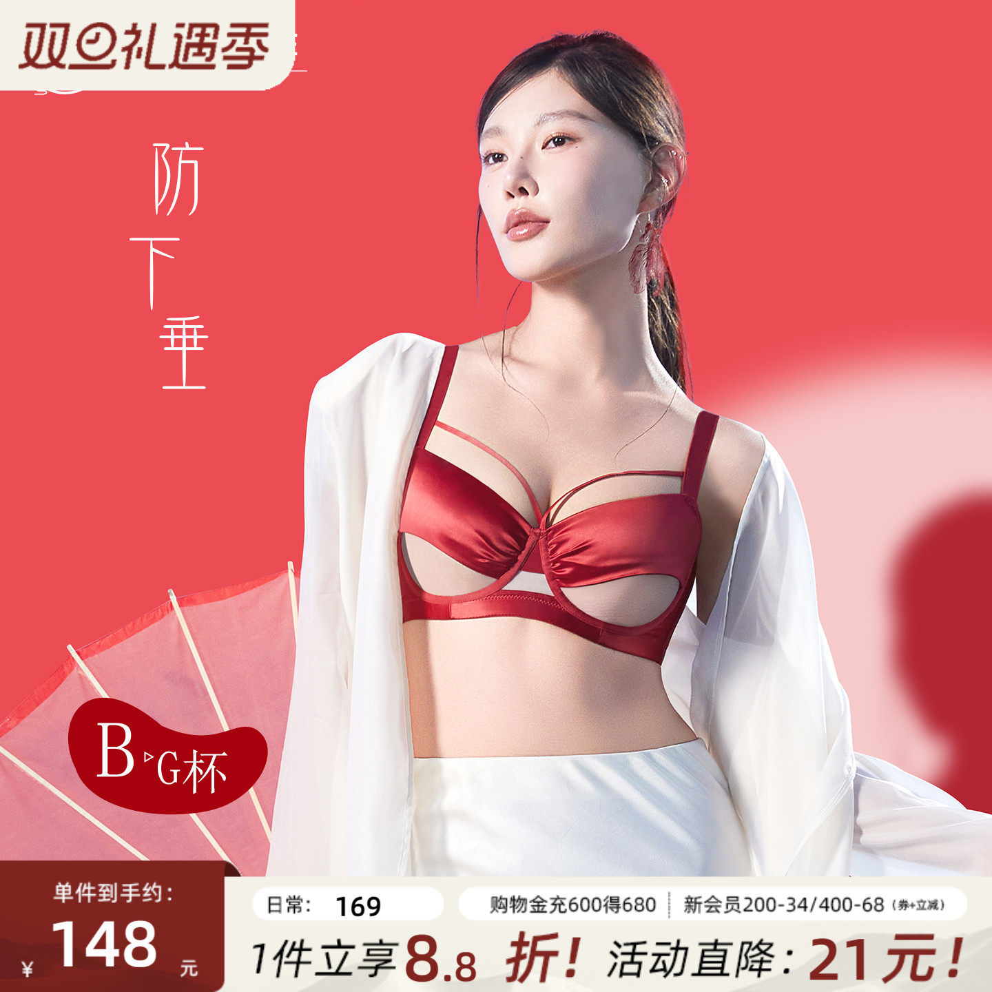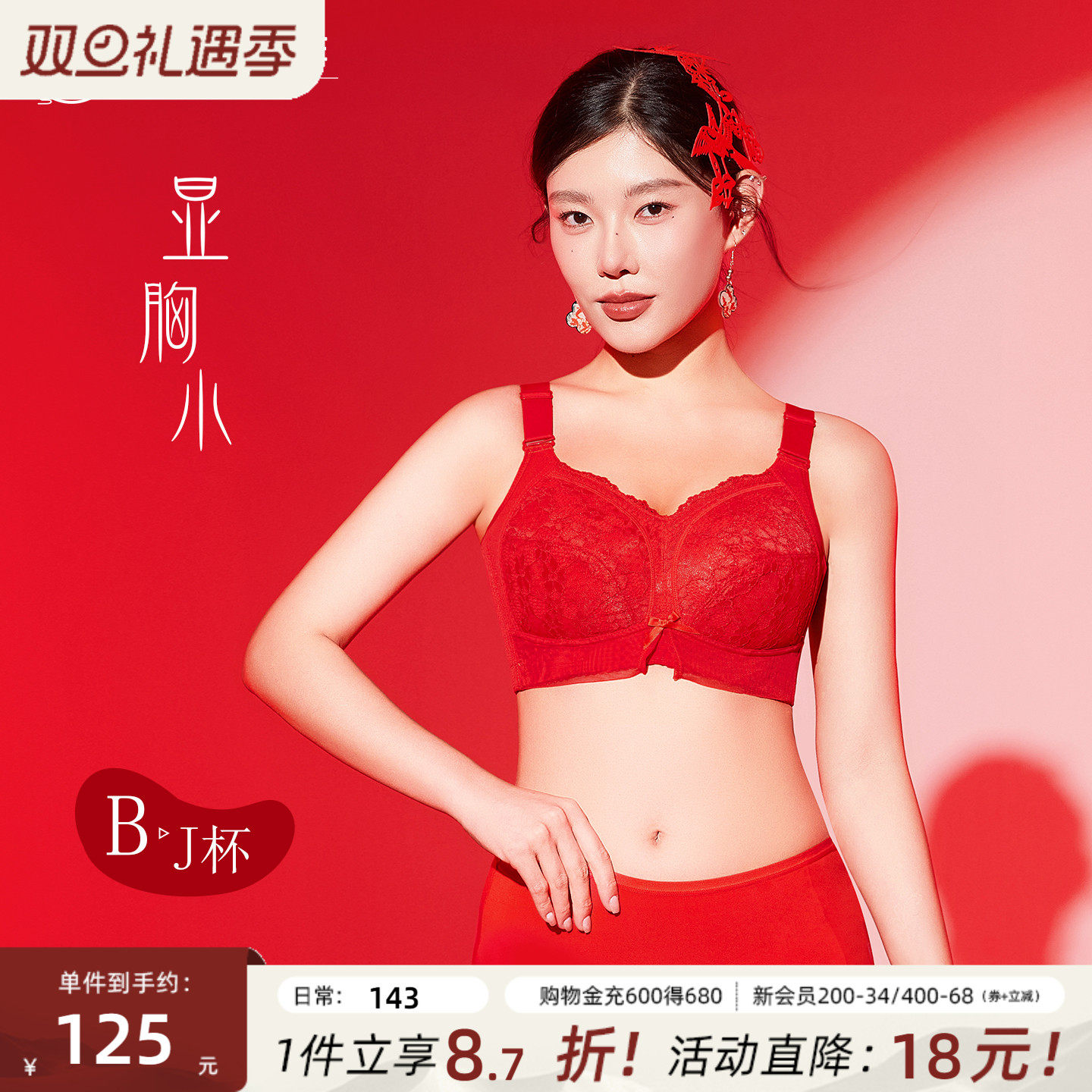 月色红色内衣内裤本命年套装礼盒结婚新娘大胸显小无钢圈大码文胸
