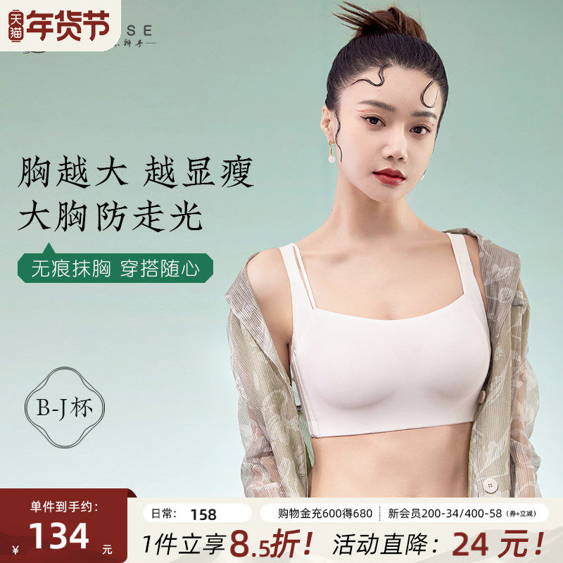 月色大码内衣女大胸显小无痕聚拢上托防下垂调整型文胸收副乳胸罩