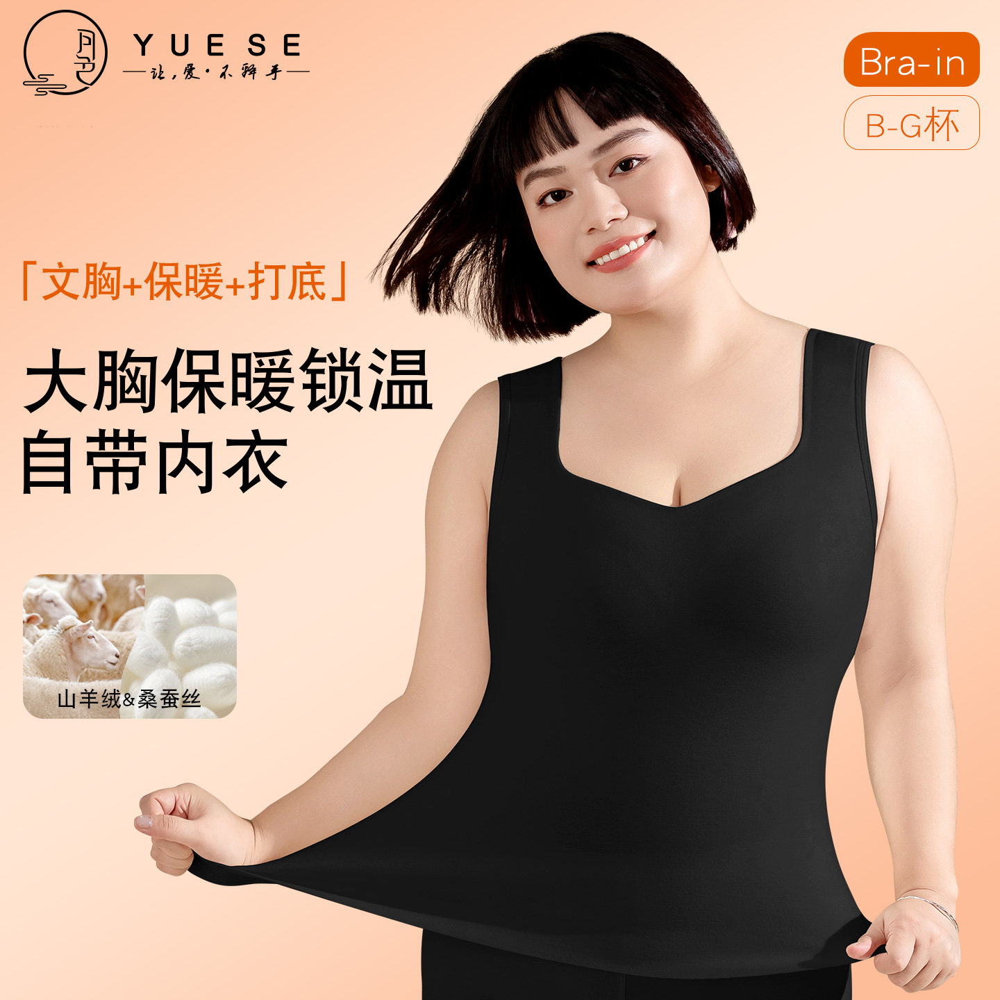 大胸加绒保暖背心女打底发热羊绒蚕丝一体免穿文胸带胸垫无痕内衣