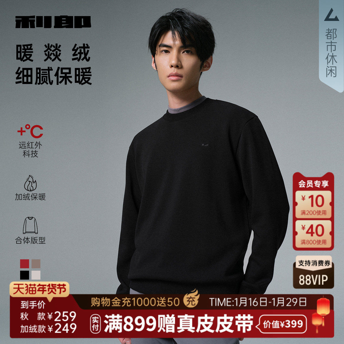 【加绒保暖】利郎官方 加厚长袖卫衣男士2025秋冬新款圆领T恤男装