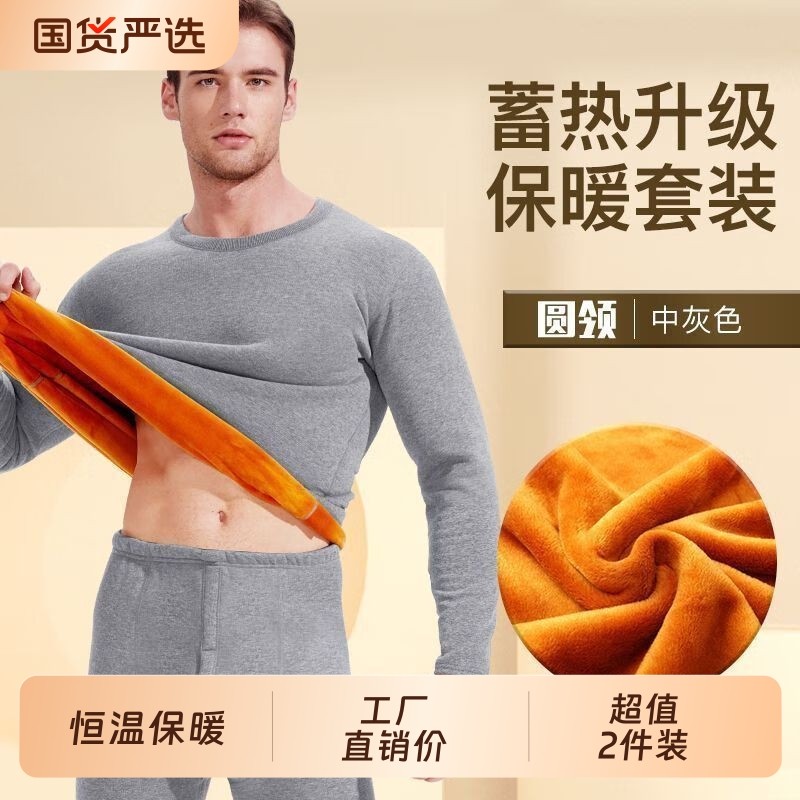 男士保暖黄金绒长袖t恤秋冬季加厚加绒秋衣秋裤保暖防寒内衣套装
