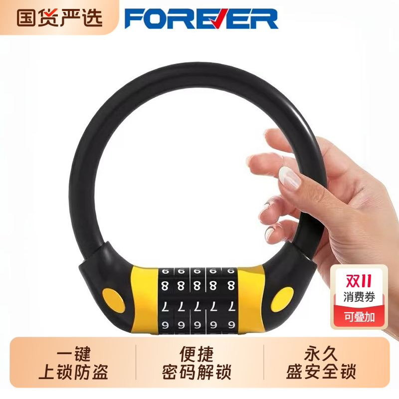 永久自行车锁密码锁电动车防盗便携环形锁单车山地车钢丝锁钢缆锁