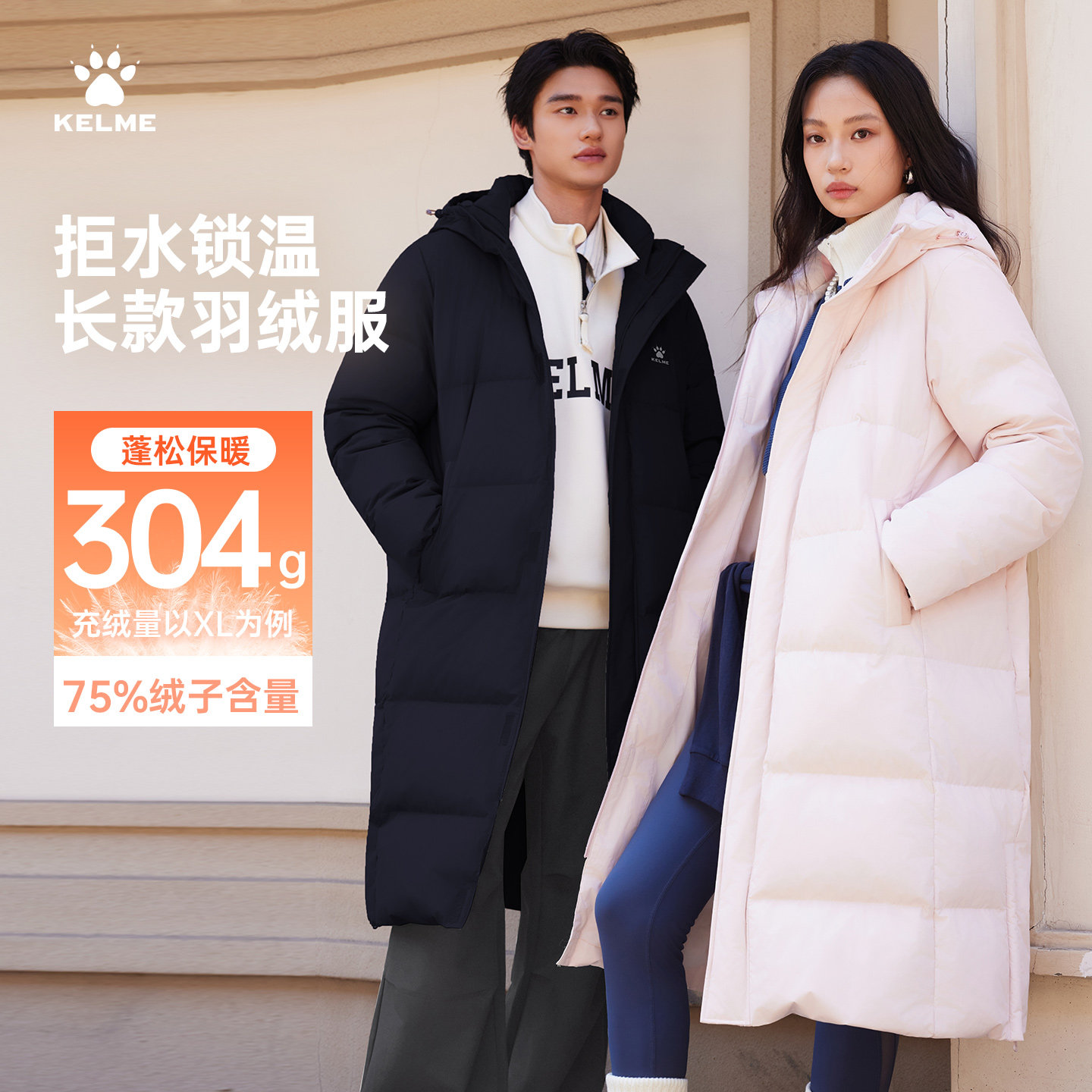 卡尔美羽绒服男女2025冬季新款过膝长款加厚保暖情侣运动休闲外套