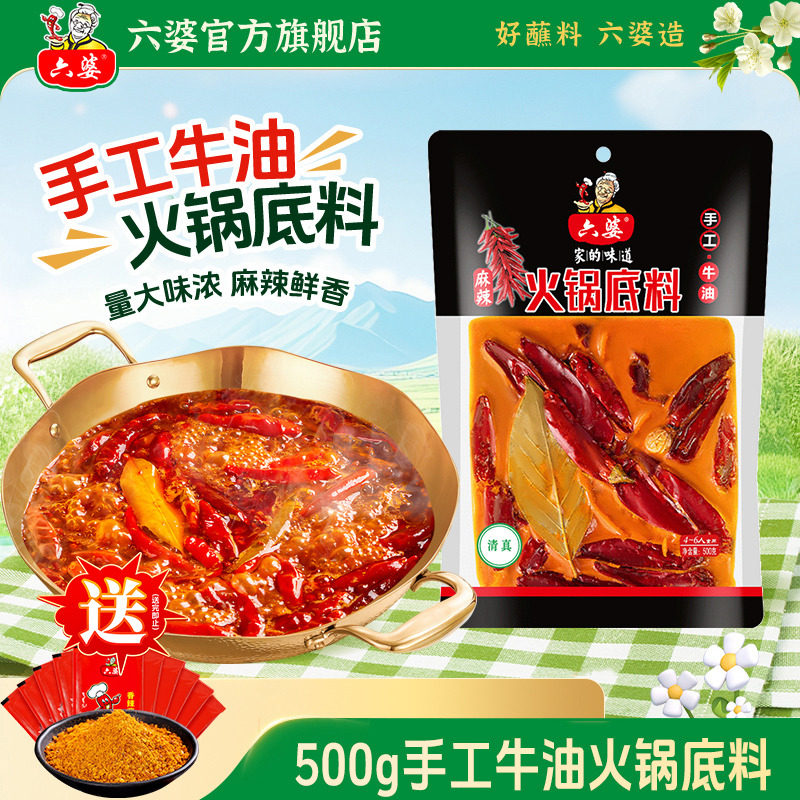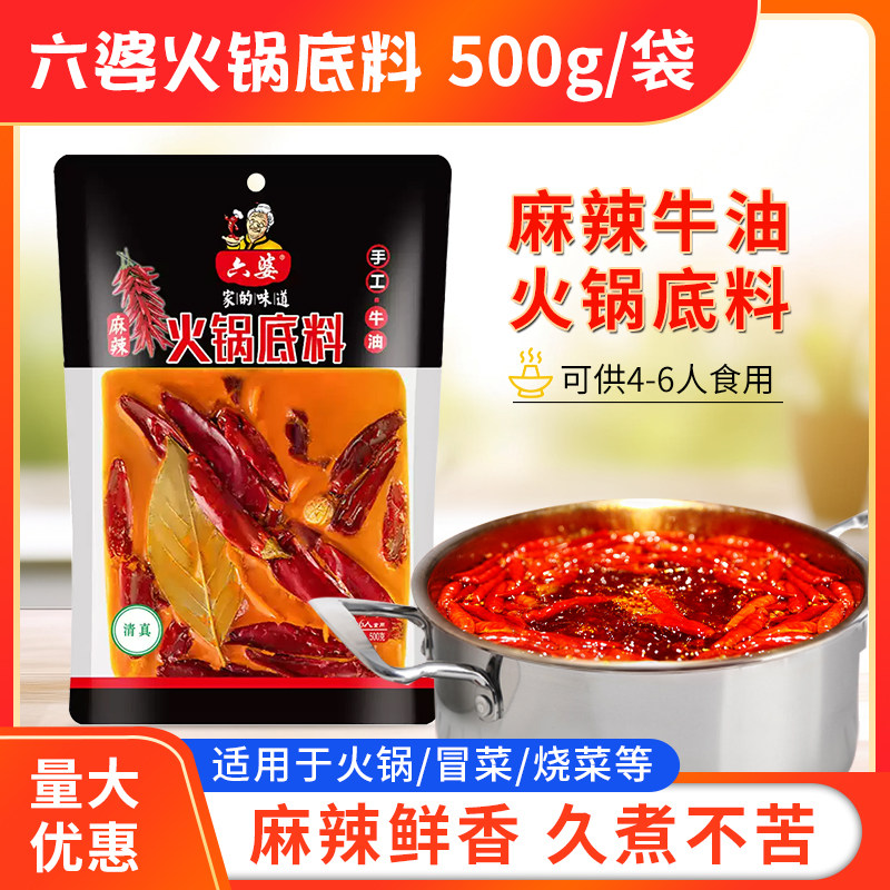 六婆火锅底料牛油手工500g家用四川麻辣烫干锅冒菜香锅调料官方店