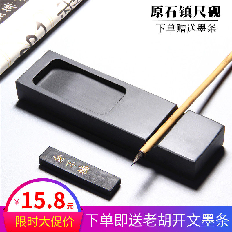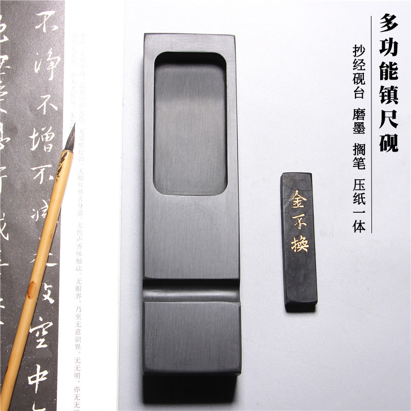 精品歙砚水波纹砚台实用包邮 石头镇尺砚 多O功能石头镇尺砚台小