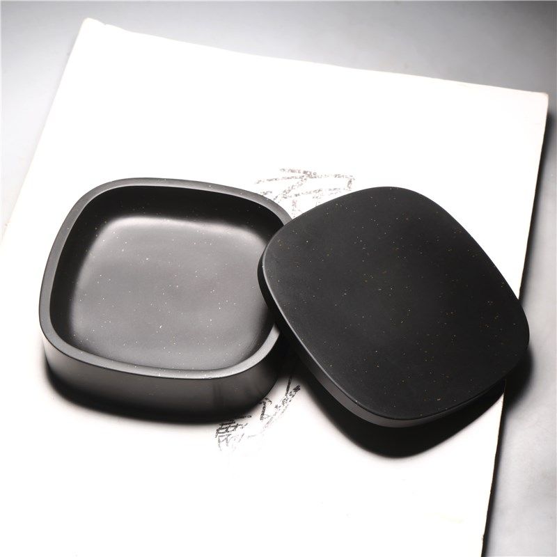 精品歙砚 带盖砚台墨盒实用包邮金星G砚台掌中宝砚台端砚文房收藏