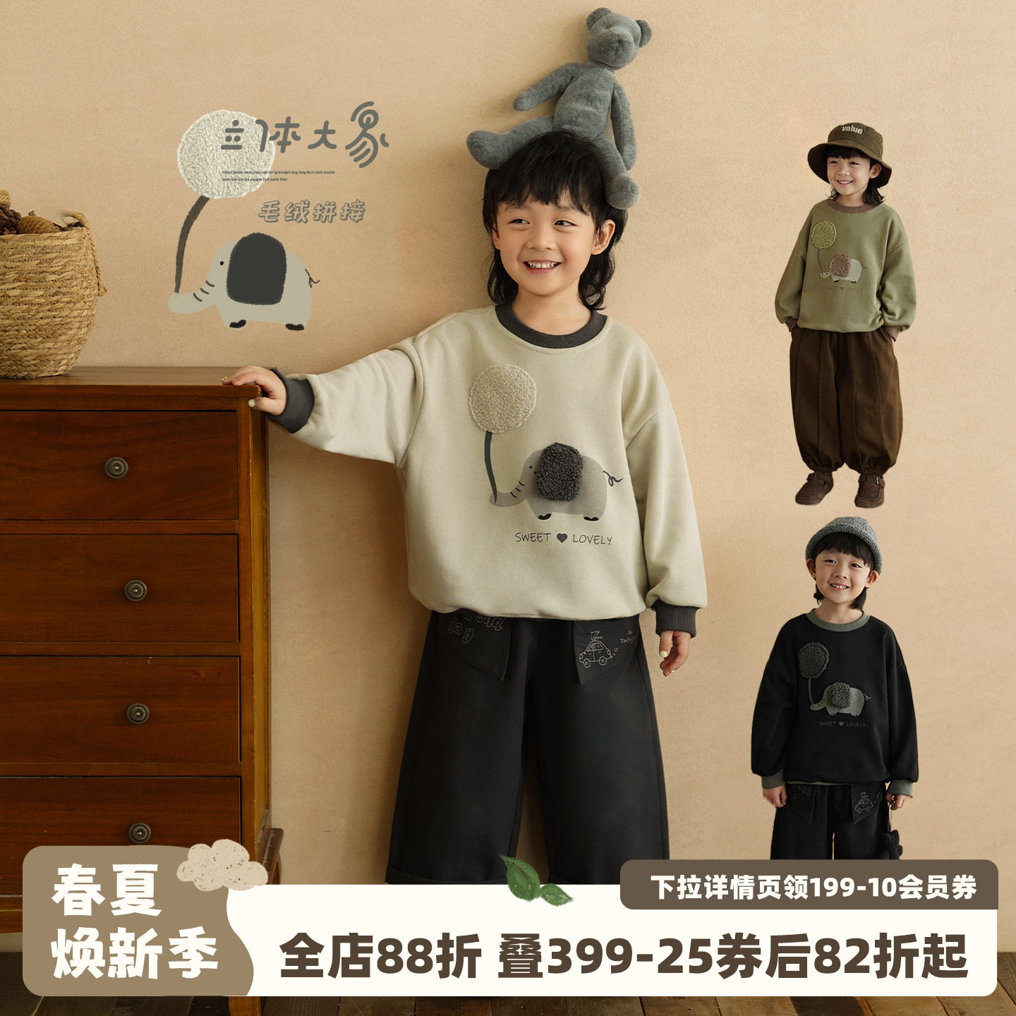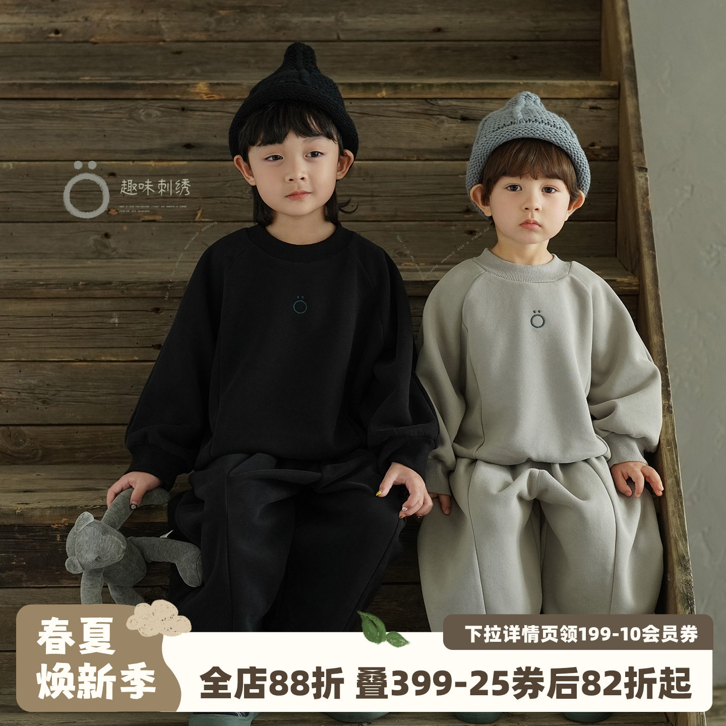 砚台家童装男童卫衣卫裤套装早春宝宝黑色衣服洋气小儿童灰色长袖