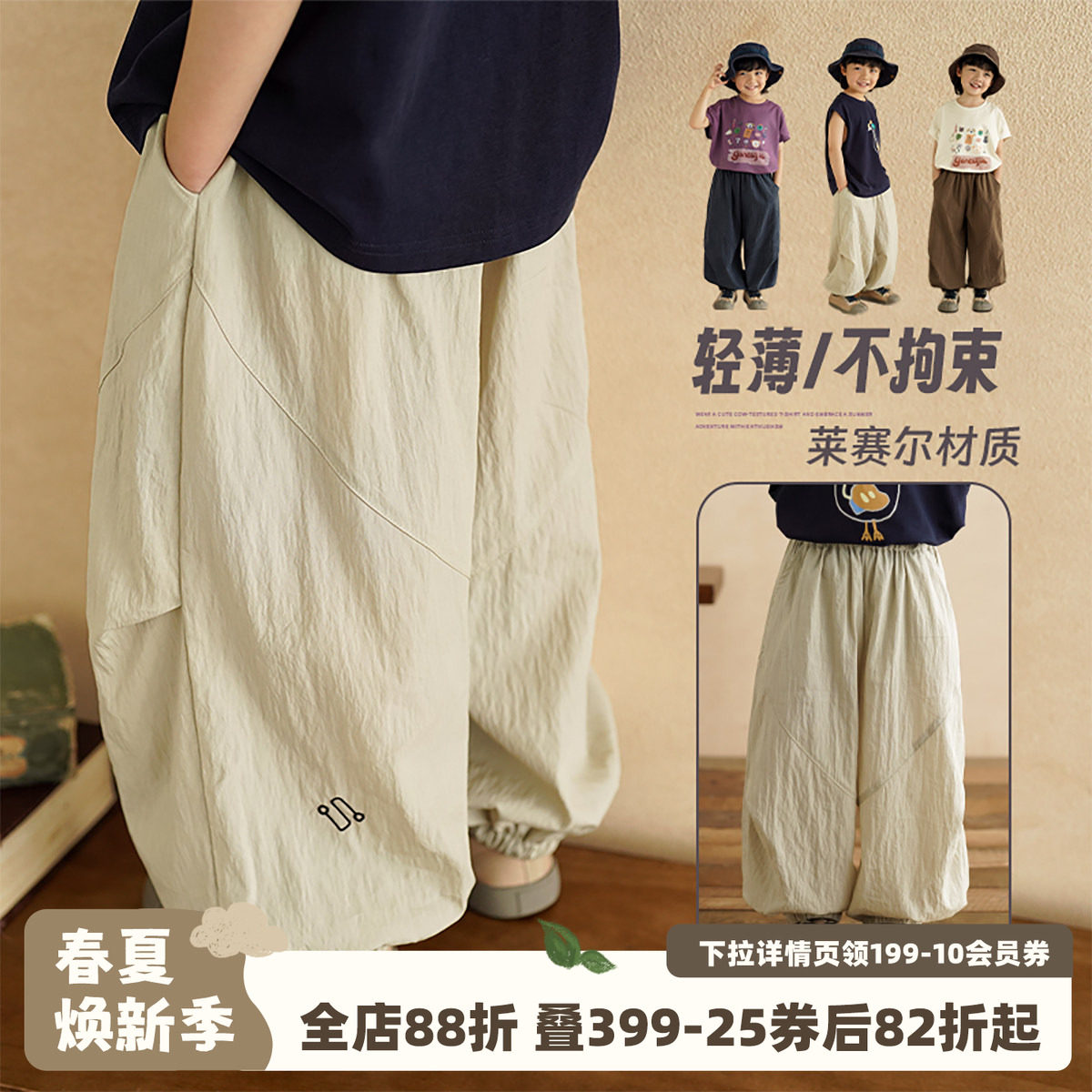 砚台家童装莱赛尔天丝轻薄防蚊裤夏季长裤儿童夏天灯笼裤宝宝裤子