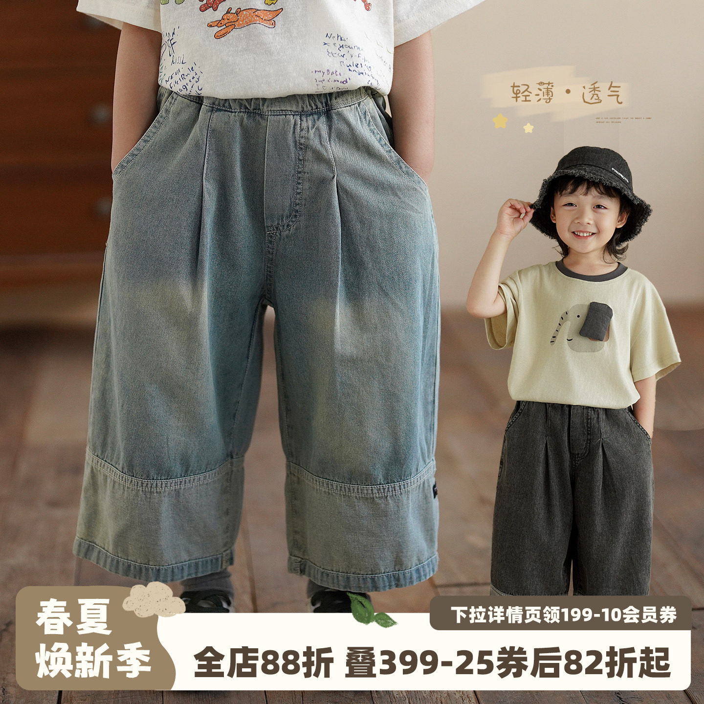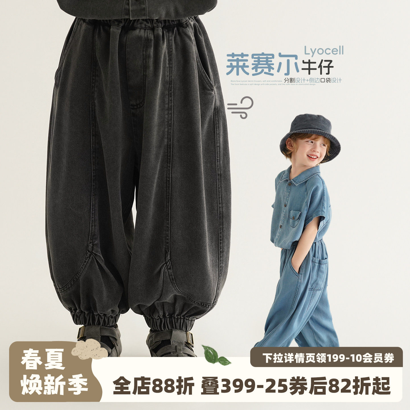 砚台家童装男童莱赛尔牛仔长裤夏薄款百搭男孩透气裤子儿童束脚裤