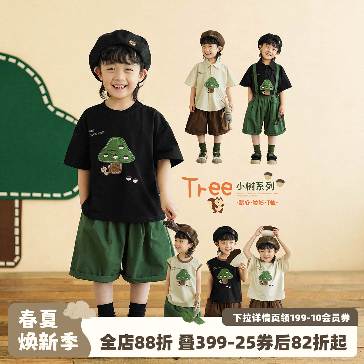 砚台家童装男童防晒短袖T恤夏装上衣男宝宝背心儿童衬衫男孩衣服