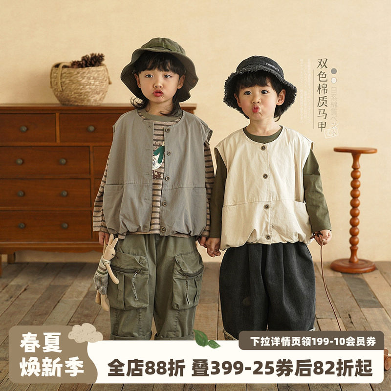砚台家男童森系纯棉马甲春装工装风儿童薄款背心男宝宝开衫上衣潮