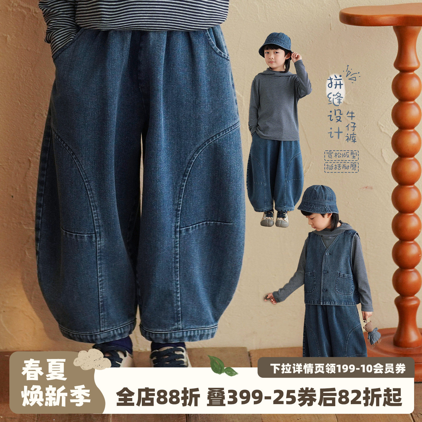 砚台家童装男童复古休闲牛仔裤2026春季新款宝宝弯刀裤儿童长裤子