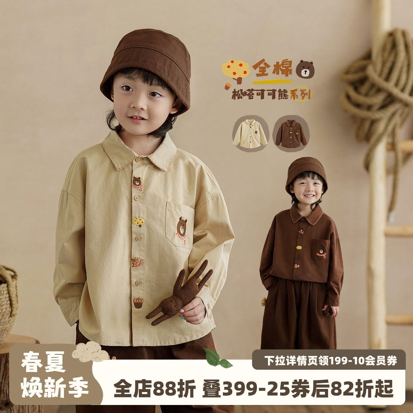 砚台家男童纯棉衬衫春装衣服儿童早春衬衣小男孩长袖宝宝上衣洋气
