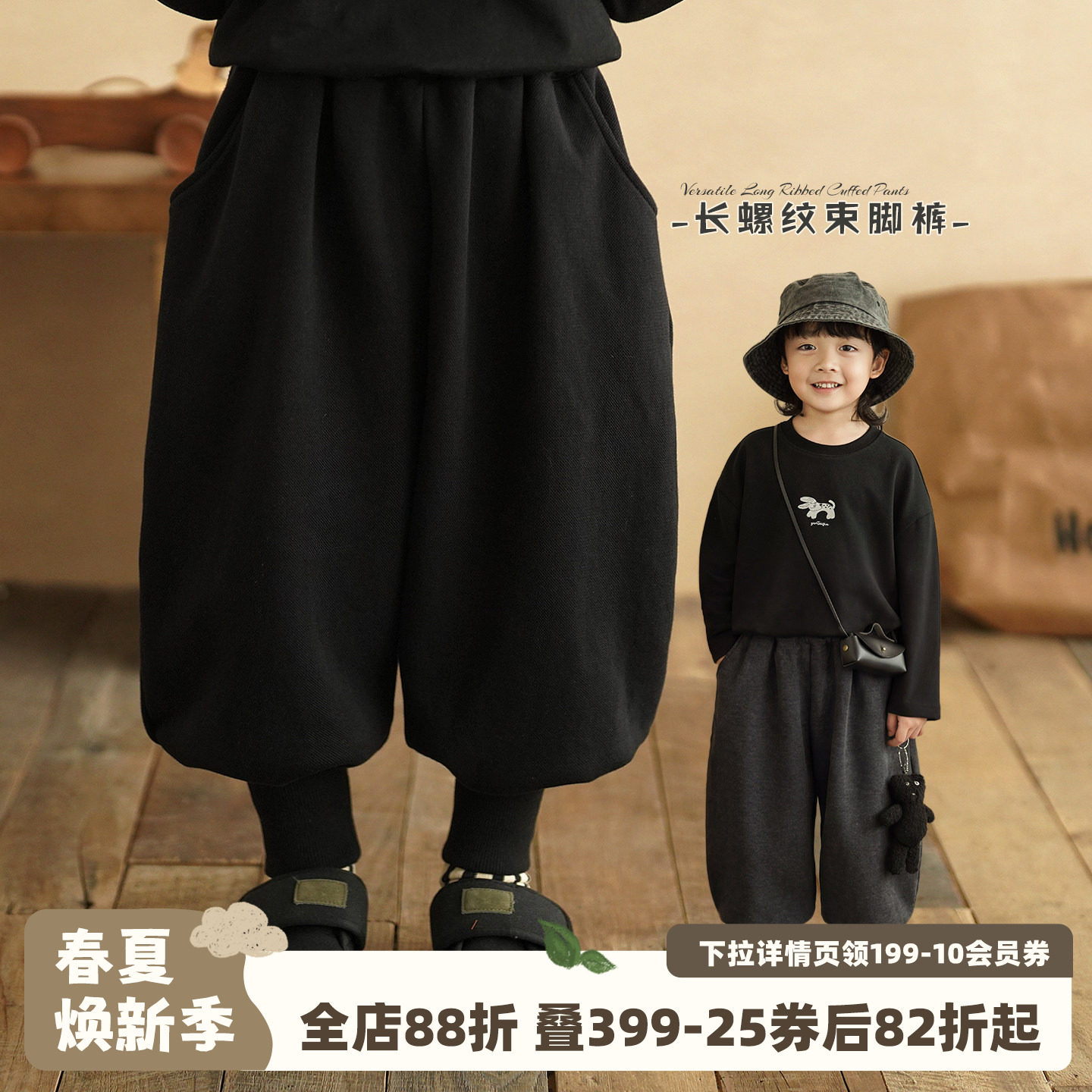 砚台家童装男童裤子春秋款儿童春季长裤男宝宝灯笼裤黑色运动卫裤
