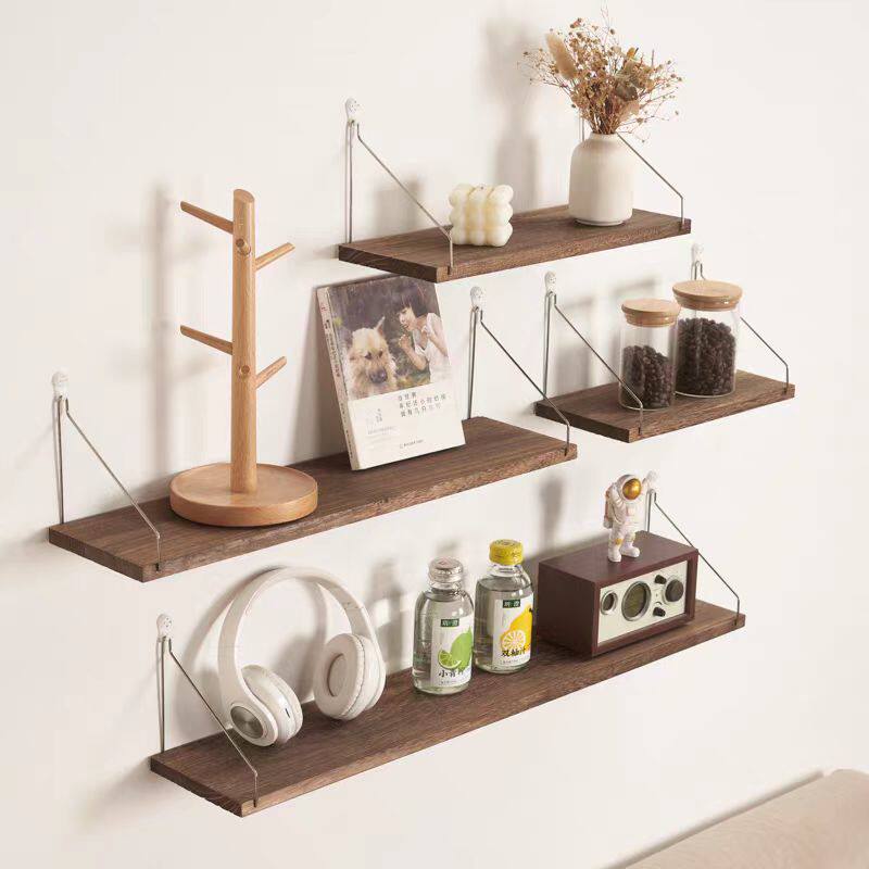 墙上置物架实木隔板墙壁书架复古一字搁板墙架客厅厨房壁挂收纳架