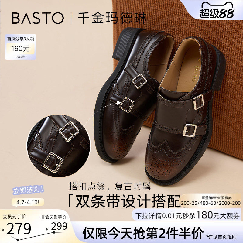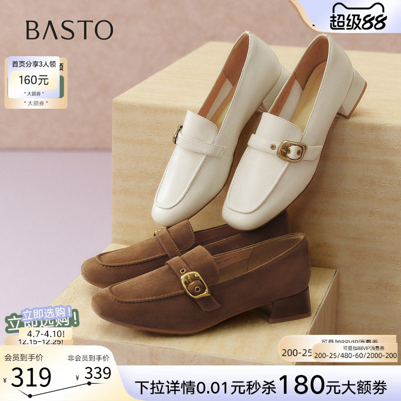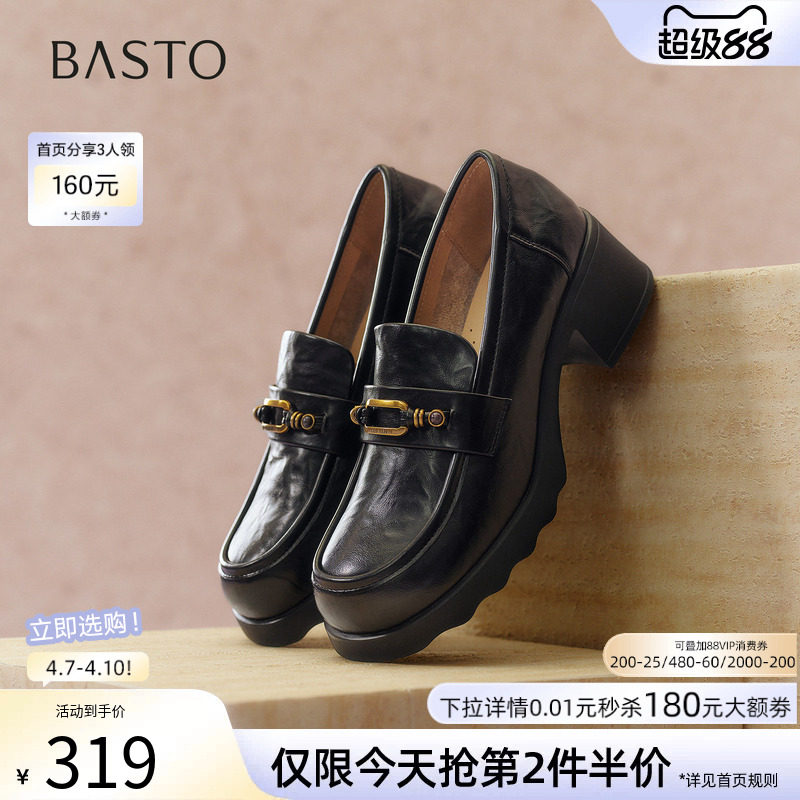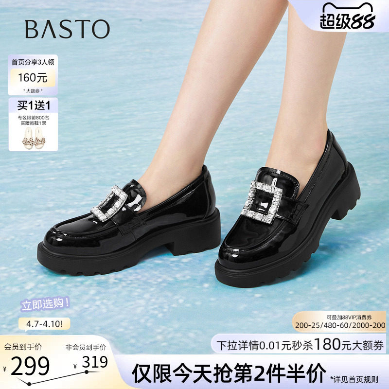 百思图2026春季新款方扣英伦风厚底乐福鞋小皮鞋女单鞋UXV10AA6
