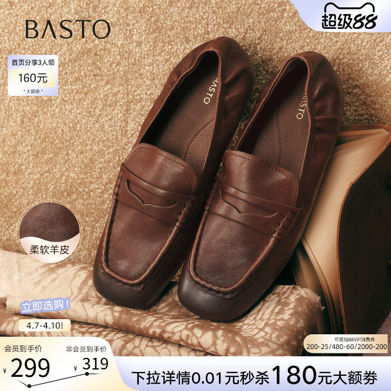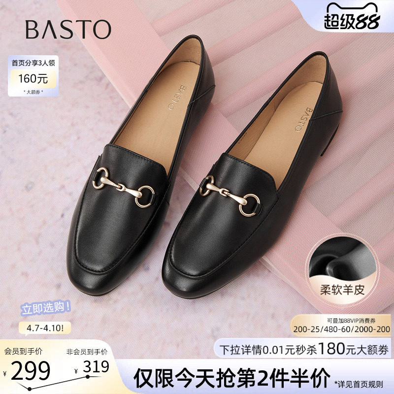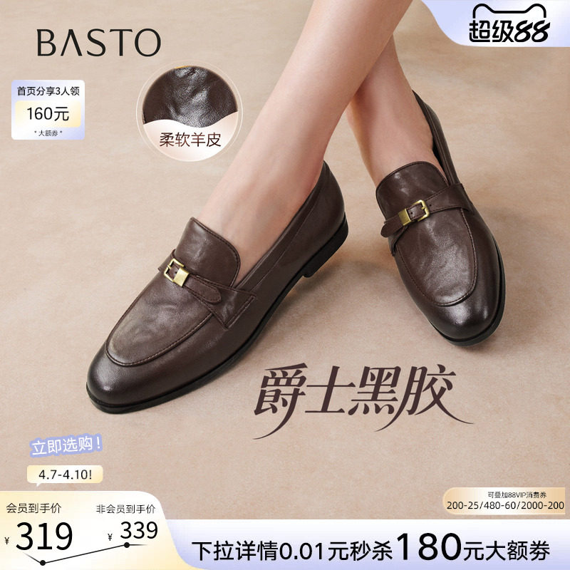 【爵士黑胶】百思图26春新款英伦超软羊皮乐福鞋老钱风皮鞋女单鞋